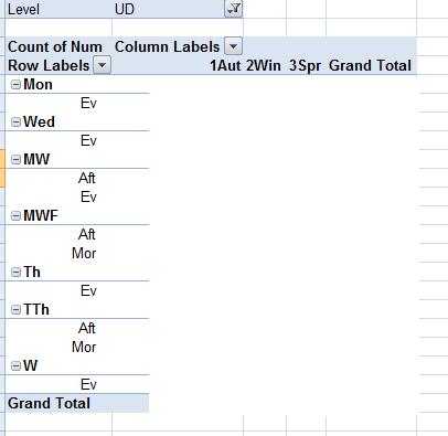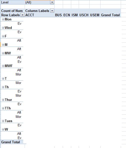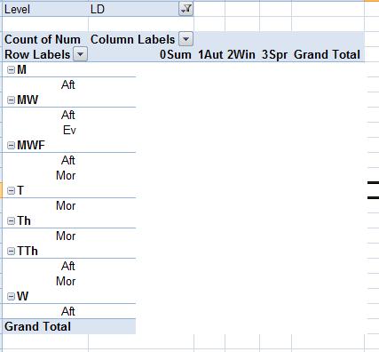 view 2 (upper division only). Move "Level" to the "Report Filter" box,