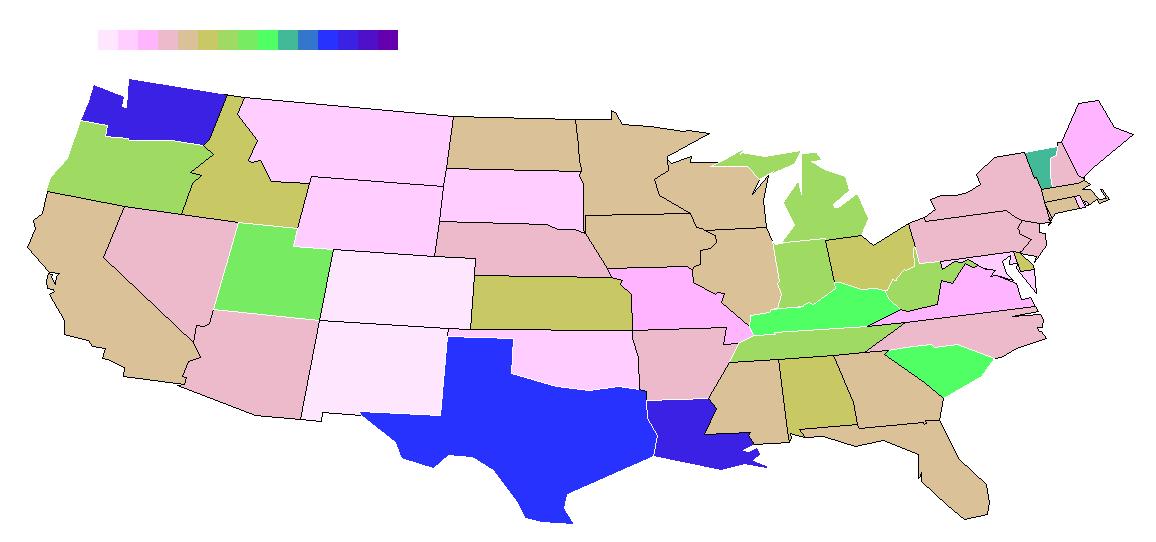| 1 | Louisiana | 32,714.8 | 187,929 | 0.1741 |
