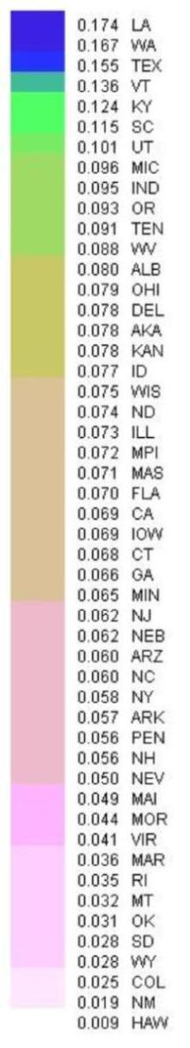 | 35 | Arkansas | 5,267.0 | 93,015 | 0.0566 |