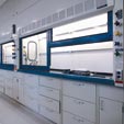 science displays; windows in the laboratories enable visitors to