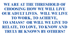 Seek to know. What do these three words mean to you? Do they mean understanding the cost-benefit analysis in order to succeed in business, memorizing the human anatomy for medical endeavors, or perusing the DSM-IV to diagnose clinical disorders? For some reason, all of this knowledge leaves me wanting more. No matter how much knowledge we gain, we still fight feelings of insignificance. Titles, honors and awards do little to ease the restlessness in our hearts. This is because we are created for so much more than the pursuit of knowledge and the quest for prominence. God created us to love and to be loved. We are relational at the core of our beings. We long to know and to be known by others. This is where we find our significance. Facts, figures, theorems and procedures won't satisfy our cravings.
