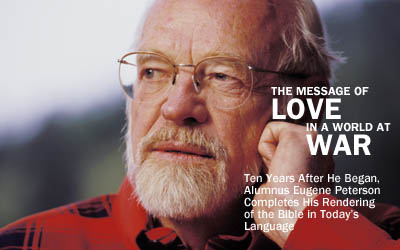 For alumnus Eugene Peterson, the 10-year saga of writing The Message began in a moment of anger. "It wasn't an auspicious way to begin a holy work," he admits.