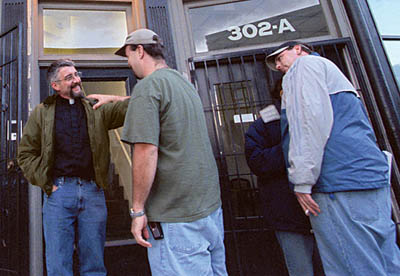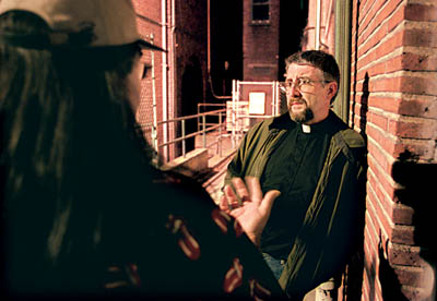 “I wear a [minister’s] collar so people will come up to me on the street,” he explains. “If I wore a suit and tie, nobody would talk to me. This way, they know what I am.”
