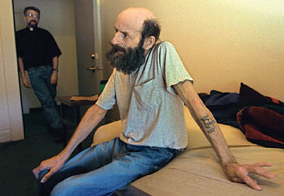 During the day, Reynolds organizes scores of volunteers, accepts truckloads of donations such as bread and carpeting, and manages two upstairs floors of apartment rooms reserved for seniors and handicapped residents. At least one night a week, including this particular Tuesday, Reynolds roams the downtown area, stopping at bars and freeway underpasses to talk with people.