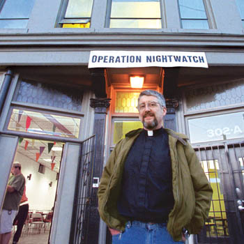 Rick Reynolds began as a volunteer at Operation Nightwatch two decades ago, while he was a student at Seattle’s branch of Fuller Seminary. The Free Methodist chaplain and 1976 graduate of Seattle Pacific University now directs the downtown ministry.