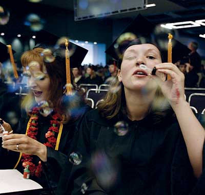 Traditional ceremony and spontaneous celebration were the order of the day at Commencement from trumpet fanfare to battalions of bubbles.
