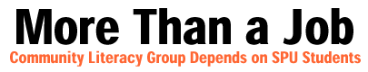 Middle: Known as the "computer guru" around Washington Literacy, SPU junior Tim Williams' expertise keeps the machines