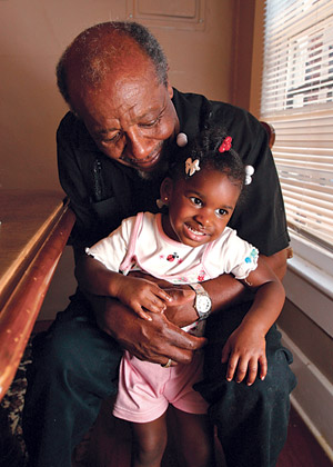 Perkins enjoys play time with one of his granddaughters, Karah.