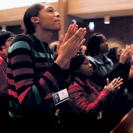 quarter, he helped them form the ASSP President’s Action Committee on Diversity. Among the group’s first decisions was to attend NCMSLC, one of the fastest-growing conferences of its kind in the nation. Together, they made trips to Calvin College in 2001, Bethel College in 2002, and Gordon College in 2003 for NCMSLC. “We came back with amazing ideas,” says Bri Clark, the 2003–2004 ASSP president.
