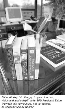 "Engaging the Culture/Changing the World" -- that's what we call our vision, and we believe we are on the right track. And the vision unfolds. In the months ahead we will be sharing a dazzling array of accomplishments from all across the spectrum of our vision. But while I will be the first to celebrate the accomplishments of our good people, I want to make sure we keep the vision out in front of us. I will always be asking the question: "Why do we do what we do at Seattle Pacific?" I am tremendously fascinated and at times alarmed by what is happening in our culture today. Thomas Oden has recently written that we live in a time of remarkable cultural transition. One culture is dying and another struggles to be born, and we live in the huge gap in between. For two hundred years the world view we call modernism -- characterized by radical individualism, reductive empiricism, moral relativism, narcissistic hedonism and the marginalizing of faith -- has defined the way we look at things. Now it is unraveling, sometimes with devastating, frightening consequences. And what will take its place? Oden suggests that what we call postmodernism is really only a severe critique of modernism. No new culture has yet emerged to tell the story of who we are and where we think we are going. Cultural drift can be a dangerous thing. The big question, perhaps the most important question, emerges: Who will step into the gap to give direction, vision and leadership? How will this new culture, not yet formed, be shaped? And by whom? In this time of transition, we need leaders. But I grow more convinced all the time that we need a new kind of leader. We live in a time when leaders need to understand not just the tools of technology, not just the leverage that money can bring, not just the means of being most productive, but how to shape lives of meaning. We need leaders who can bring hope. We need leaders who can bring moral vision. We need leaders who can bring us together. "We live at a time of cultural crisis," says the New Testament scholar N.T. Wright. "At the moment I don't hear anyone out there pointing a way forward out of the postmodern morass...." I agree. Where are we going to find direction? Who will be the leaders that will step forward to bring hope and meaning and healing to our communities, our organizations and our world? Well, here is the answer. In Wright's words again, "The gospel of Jesus points us and indeed urges us to be at the leading edge of the whole culture, articulating in story and music and art and philosophy and education and poetry and politics and theology and even, heaven help us, biblical studies, a world view that will mount the historically rooted Christian challenge to both modernity and postmodernity, leading the way into the postmodern world with joy and humor and gentleness and good judgment and true wisdom." This says it all for me. This is precisely what we are trying to do at Seattle Pacific. This is our vision. And then Wright concludes with this challenge: "I believe we face the question: If not now, then when? And if we are grasped by this vision, we may also hear the question: If not us, then who? And if the gospel of Jesus is not the key to this task, then what is?" These questions define precisely for Seattle Pacific the extraordinary opportunity and the profound challenges we accept for our future. We intend to be right at that "leading edge of the whole culture" bringing vision, hope and the healing of the gospel of Jesus. We are lifting up our vision for such a time as this. | |||