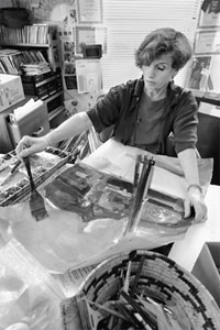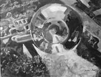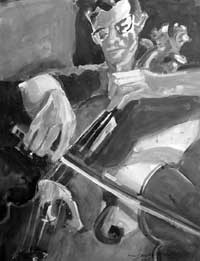 By Martin Stillion Photos by Jimi Lott | ![]() Before you answer that question, consider the paintings of Seattle PacificUniversity alumna Jackie Brooks '57. Musical images — instruments,players, even sheet music — fill Brooks' artwork, just as they'vefilled her life. "A number of people look at my paintings and say theyactually hear music," she says. "A psychoanalyst said he could hear theDvorak cello concerto." Born in South Dakota, Brooks grew up in Longview, Washington, in the 1940s.She took piano lessons as a child until her mother sold a small farm she'dinherited and bought a violin for Jackie and a cello for her sister,Virginia. Brooks began studying the violin in the fifth grade. But she alsowanted to paint — and when she was a sophomore in high school, Brooksrecalls, "an art teacher whose forte was watercolor took a special interestin me. ... I learned looseness and a lot of color, and not always paintingexactly what you see." She enrolled at Seattle Pacific College in the mid-1950s, when the schoolhad no degree program, and only a smattering of courses, in the visual arts.So she pursued her other great interest: a degree in music education. Shewent on to teach both art and music, perform with the Cascade Symphony,marry fellow alumnus David Brooks '58, and raise two sons. (Jeff '83 is theprincipal bassist in Thalia Symphony, SPU's orchestra-in-residence, and asenior writer at The Domain Group, a Seattle advertising agency. Brooks'other son, Arthur, played the French horn and now teaches economics atGeorgia State University.) And she kept on painting. At last count, Brooks had been accepted into more than 70 such competitions,and she took home awards from half of them. A member of seven watercolorsocieties, she's recently shown her work in New York, Montana, Texas,Oklahoma, Washington and Arizona. SPU's Art Center Gallery showed several ofher pieces at Homecoming 2001, and she's traveled as far as Nicosia, Cyprus,to display paintings and conduct workshops. Ten years ago, as a result of Parkinson's disease, Brooks had to put herviolin aside. She no longer had the fine motor control necessary to play theinstrument in an orchestra, although with medication she could still use apaintbrush. But, she says, a new sense of urgency infused her work: "I thought, 'I don't have time to do conventional paintings any more. I needto express what I really feel inside.' Some of it was anger; some waselation." And as a Christian, she felt the need to be honest about herexperience. So she developed a bold, assertive style characterized byintense colors and strong emotions, and she chose to focus on subjects thatheld deep personal relevance for her. That meant lots of music paintings and family portraits, which cover thewalls of her Queen Anne home studio: her son Jeff immersed in the sound ofhis string bass; her granddaughter Emma trying on one of Brooks' own hats;her husband in the foreground of a Cyprian landscape. Though the topics arepersonal, there's plenty in Brooks' work for others to appreciate. One ofher biggest fans, Seattle violin dealer Rafael Carrabba, displays several ofher paintings in his shop, and even sells postcard prints of them. Sometimes she'll transform an old work by painting a new one on top of it,and there's always more than meets the eye: A row of organ pipes servedouble duty as champagne flutes. A tiger morphs into a French horn. Shadowyforms inhabit the panes of a stained glass window — possibly, Brookssuggests, they're reflections of the artisans who built the church. Brooks believes her unconventional approach has helped her make the leapfrom pretty paintings to beautiful ones: "People who don't know much aboutart will often say,'Oh, how pretty.' Beauty goes beyond pretty because itmoves into the soul of the painter, and it brings out a knowledge thatsometimes you don't even know is there." Perhaps, then, her own dictum — "not always painting exactly what yousee" — doesn't quite do her work justice. You could say that Brooksdoes paint what she sees; it's just that she's learned to look at things alittle differently. Editor's Note: To view 40 of Jackie Brooks' paintings in color, | |||