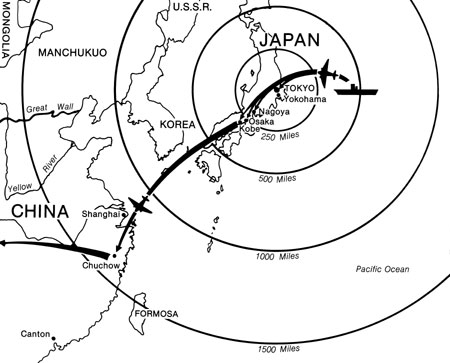 The initial plan for the raid was to launch the planes 400 miles from Japan; bomb the designated targets in Japan; fly to the airfields near Chuchow, China; refuel; and then fly to Chungking.