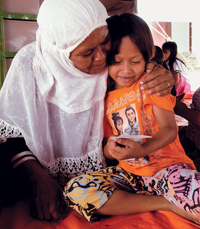 To support survivors of the Asian tsunami, World Vision has created safe settings for children to learn, play, and receive trauma counseling.