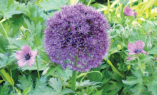 Columbine, wisteria, peonies and this purple allium were some of the flowers in bloom for the campus tour.