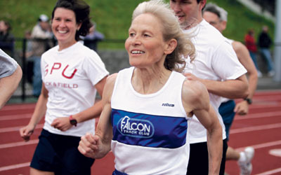 Before her hip-replacement surgery, Doris Heritage and 200 of her students and friends ran a final mile together — and raised money for the Heritage Scholarship Endowment. Discover why she continues looking ahead, not behind.