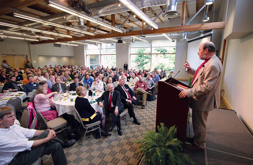N.T. Wright addresses local pastors and other church leaders in Gwinn Commons on the topic of “The Christian Challenge in the Postmodern World.”