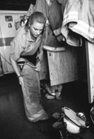 "Once, an entire downtown city block was ablaze," says Hardman as she recalls her closest brush with death. "I was on initial attack and ran out of oxygen in my air pack. I stopped breathing and had to be rushed to the hospital. I missed five days that time." Rarely are two consecutive days alike. She laughingly thinks back to the charred chicken she once "rescued" from a restaurant rotisserie. Last summer, she went on "conflagration call" and fought wildfires in one of the worst forest fire seasons in decades. Hardman keeps her nails short and her long blond hair tucked safely inside her helmet. The only jewelry she wears is an engagement ring. But for all the excitement and sense of accomplishment her job brings, there are also loss and hard lessons to be learned. "God decides who makes it and who doesn't," Hardman says. Her voice hushes with sadness in memory of the 11-year-old drowning victim who died in her arms on the banks of the Umatilla River. "We couldn't locate the victim. We had to split up and search about a mile downstream before we found her. The ventilation equipment had gone with the other part of the crew so I had to give mouth-to-mouth resuscitation for my first time. She didn't make it." But Hardman, who gives school tours of the fire station, has also looked into the eyes of a child clutching to a faint hope. "The guys love to dress me up in my gear to show the kids that under there I'm not so scary, but really a nice lady."