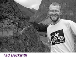 After creating a nonprofit organization, PeaceBike, Beckwith set off near his home in Dayton, Oregon, in September 1999. Logging nearly 10,000 miles on his bike, he traveled a mostly western route for two years through 20 countries in North and South America, Australia and Asia. Traveling at bike speed, Beckwith stopped for kids and anyone else who cared to chat, snap group photos and share meals. Along the way, the schoolteacher visited schools to encourage students to talk about their hopes for the world. Beckwith urged his new friends to check out his Web site, www.peacebike.org. There they could chart his progress through his journal entries and find pen pals. In that way, he hoped they would find out how kids lived differently and yet wanted the same basics food, family, friendship and peace. "The world has changed in the last few years," says Beckwith. "It's all connected by the Internet now." Even when biking across China, Beckwith found Internet cafés where anyone could log on for an hour for only 2 yuan, about 25 cents. Though sometimes joined by a friend or his sister Penny, Beckwith traveled mostly solo. Kids greeted him as soon as he entered a town. "I was a bit of a bike celebrity," he grins. That status helped him at borders and military checkpoints. "As a bit of an odd guy," he remembers, "I'd get the stern questions." But that would soon turn into friendlier questioning about his reason for biking around the world. Beckwith often left the checkpoints with a wave and a promise to exchange e-mails. Seattle Pacific University professors and fellow alumni have inspired Beckwith along the way. His geography professor, Kathleen Braden, heard his dream and said, "That's great! Here's 50 bucks. Go out and get started." Mícheál Roe and Jeff Joireman, faculty members in psychology, encouraged him to work toward peace in tangible ways. Beckwith's former roommates, Jason Domer '96 and Jonathan Shaw '96, show support: Jason is on the board of PeaceBike, and Jonathan has worked as the site's webmaster. Last fall, after war broke out in Afghanistan, Beckwith says, "I was in a Muslim area of India, yet people treated me well. Those people are my brothers and sisters." Still, the board of PeaceBike urged Beckwith to cut short his global crossing, bypassing Iran, Iraq and Europe. Now home in Oregon, Beckwith says he wants to be a voice for peace. "In this globalized culture, we need one another more," says Beckwith. "Now I have experience behind my mission for peace."