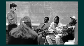 | ![]() ON A GRAY MORNING during Autumn Quarter 2001, three Sudanese men in their early twenties enter a Seattle Pacific University classroom. Accompanied by Cal Uomoto, director of World Relief's refugee program in Seattle, and their caseworker, Amy Wagner, a 1998 SPU graduate, the young men settle into plastic chairs. They smile shyly at the freshmen, all about their own age, facing them. The Africans pull off wool hats but retain scarves and gloves. Used to equatorial heat, they are chilled even indoors. Then they speak. In heavily accented but excellent English, they tell a harrowing story — how they survived civil war, marauding lions and refugee camps, and how they have been on their own since the age of seven. This remarkable exchange takes place in University Seminar, a first-quarter freshman course in the Common Curriculum. University Seminars are designed to orient students to college-level academic work, and each one focuses on a different interdisciplinary topic. In this particular class, called "Beyond Barriers," students are learning from the experiences of people who have overcome obstacles to gain something of great value. And the freshmen do learn from the Africans. They learn that Joseph, Marko and Anthony are part of an exodus the media dubbed "The Lost Boys of Sudan." It all began in the 1980s, when insurgents from northern Sudan attacked the south. Invaders kidnapped girls, selling them as slaves in the north. Adults were killed or captured. But as many as 12,000 boys escaped, slipping into the jungle and walking barefoot for three months. Those who lived survived hunger, thirst and the unimaginable terror of wild animals. "The boys walked in a line through tall grass, and lions would come out of the grass and take them," Joseph remembers. "If you cry and fall down, the animals will get you," adds Marko. "We had to keep walking."