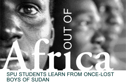 ![]() One visiting refugee wants to be a pilot; one hopes to be an engineer or doctor; and one leans toward business. They plan to use their skills to benefit the people of Sudan. Anthony says that some little boys finally gave up. "They would walk for a while and then sit down. If they sit down, they do not go on." And yet there were miracles. "Oh yes, this really happened. God protects us from all we went through," Marko explains. "In the desert, there was no water, so a single cloud formed overhead and it rained upon us." The tribe of children found sanctuary in Ethiopian refugee camps, but four years later, civil war forced them to flee again, chased by soldiers. At river crossings, swimming boys were shot or picked off by crocodiles. Survivors ended up in Kenya, spending nine years in refugee camps while the world debated their future. Recently, the children now grown men have been allowed to immigrate to other countries, including the United States. About 50 have settled in the Seattle area. Wagner, 24, helps them acclimate to an entirely different culture, saying refugees stay with a family for two or three weeks to make the initial adjustment. After that, she and volunteers find housing and jobs for them. Wagner was thrilled to introduce her "guys" to the University Seminar class, knowing it would stretch both the Africans and Americans. "The freshmen may not really understand all of this, but I know they have a heart to serve the Lord. And it was wonderful to bring the guys to SPU, the place that so shaped my life." Linda Wagner (no relation to Amy) taught the Beyond Barriers class and notes that student papers reflect a true learning experience. "The most common response was how it opened their eyes. Students were awestruck and felt gratitude for their lives, especially their education." Freshman Brad Hostak marveled at how important learning is to the Sudanese men, recalling how as boys they carried satchels of books throughout their ordeal. Marko, for instance, brought along his Bible and a math text. Hostak is no stranger to hardship, having survived childhood cancer, yet he is amazed at the perseverance of the "Lost Boys." "Even with an illness, there are times you can relax and rest. They couldn't do that." Another freshman, Jelena Berovic, found personal meaning in their story. She is a refugee as well, from Bosnia. In her reflection paper on the tragedy and triumph of the African children, she wrote with special understanding: "They were just kids, but they had to act as adults their time of play and laughter was over; their struggle for life had just begun."