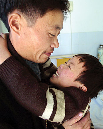 A father embraces his daughter in the AIDS ward of a Beijing, China, hospital.