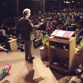 “Faith means believing in advance what only makes sense in reverse,” he told a student forum in the Student Union Building. Christians, says Yancey, will one day discern the pattern of God in their lives, even from those times of greatest uncertainty.