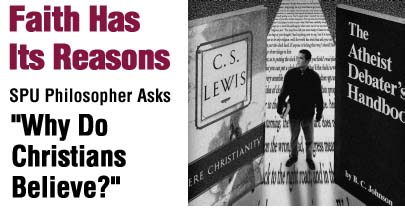 Seattle Pacific Professor of Philosophy Stephen Layman taught a University Seminar titled "Why Do Christians Believe?" to twenty first-year college students during Autumn Quarter. Together, they explored Christian apologetics, the branch of theology or Christian thought that attempts to give an organized defense of the Christian faith. Layman first asked the freshmen to read relevant parts of C.S. Lewis' Mere Christianity and examine Lewis' argument for God's existence, as well as his critiques of such alternatives as dualism and pantheism. Then the professor and his students took a look at "the other side of the fence" by reading B.C. Johnson's concise defense of atheism, The Atheist Debater's Handbook. "Johnson provided us with a clear picture of the challenges Christian apologetics faces," notes Layman. Finally, the class read and discussed selected portions of some of the best current apologetical works, published articles on the problem of evil by Peter van Inwagen and SPU Associate Professor of Philosophy Daniel Howard-Snyder, and key chapters from J.P. Moreland's Scaling the Secular City. "The course was designed to acquaint students with some of the main arguments Christians have traditionally used to defend their faith," says Layman, "and to help them organize their own thinking about their beliefs." In this essay for Response, Layman summarizes three possible views of the role of reason in defense of the Christian faith.