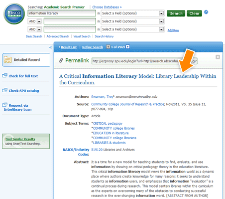 If you obtain a persisten link while searching an SPU database, this proxy information should already be part of the URL. However, you may want to double-check the URL by comparing it to examples in the third section of this page: Allowing off-campus access to article.