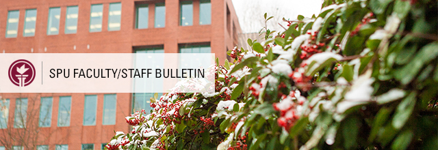 The Faculty/Staff Bulletin is published every Monday (or Tuesday if Monday is a holiday) during the academic year. If you have information or event news, send it as soon as possible to Bulletin editor Tracy Norlen at fsb-editor@spu.edu. Submissions may be edited for clarity. The next deadline is Thursday, December 5. The next Bulletin will be published on Monday, December 9.