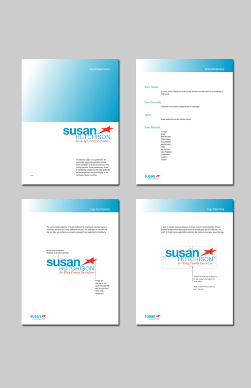 See PDF of Susan Hutchison Campaign Brand Guideline as a reference.